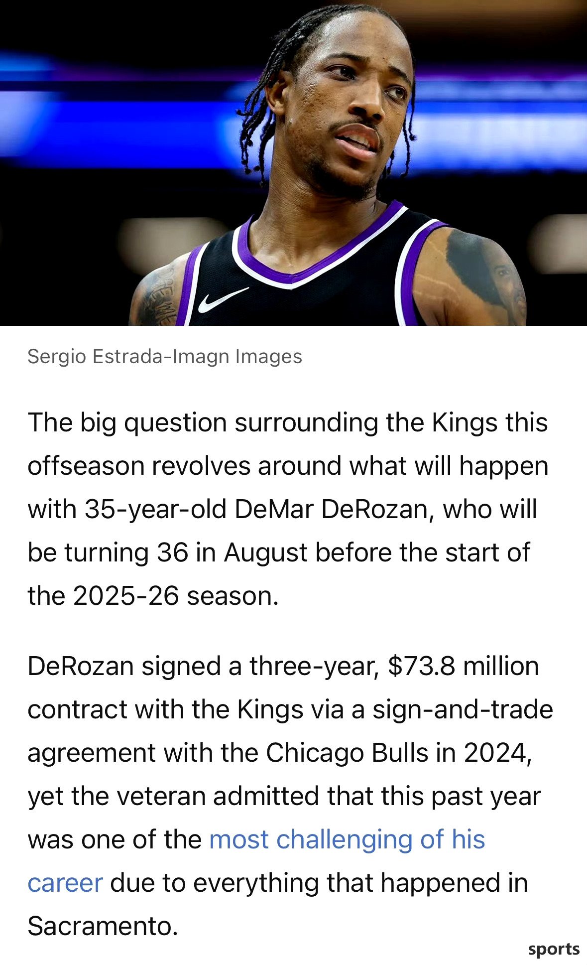 Also! According to reliable news, the Kings are likely to trade a stable scorer DeRozan in the offseason!