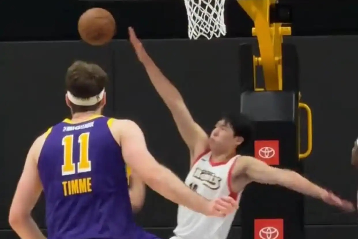 Of course, Timmy is not as strong as expected. His defense is not good, his movement is slow, and his defensive habits are not good. Eight days ago, during the game between the South Bay Lakers and the Portland Mix, Chinese center Yang Hansen had an exchange of words with Timmy. In that game, Timmy made 11 of 22 shots, 1 of 6 three-pointers, and scored 27 points, 6 rebounds, and 4 assists, while Yang Hansen made 8 of 16 shots, 2 of 5 three-pointers, and scored 21 points, 9 rebounds, 3 assists, and 3 blocks. Both performed well. It can be said that they couldn't guard each other and exploded.