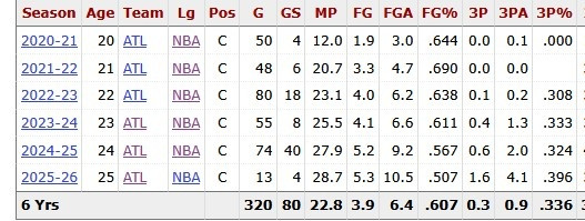 Excluding this game, Okongwu's three-point shooting rate this season is as high as 39.6%, averaging 4.1 field goals and 1.6 field goals per game. In the previous seasons of his career, his highest three-point shooting percentage was only 33.3%.
