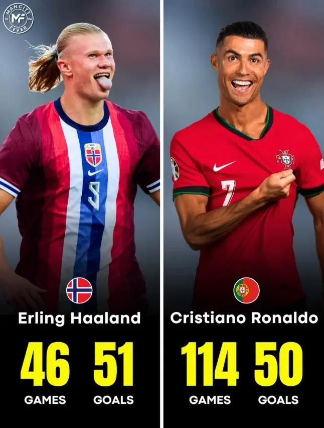 In the past 12 World Cup qualifying games, Haaland has scored 17 goals, only 22 goals away from Ronaldo's World Cup scoring record (39 goals). He has scored 51 goals in 46 games in his national team career. Considering Haaland's age (25 years old), the Norwegian high center is likely to catch up with Ronaldo's record in the next World Cup qualifiers (29 years old).