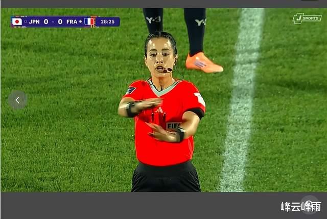 The game was subsequently interrupted and the Japanese team requested replay to review whether a penalty kick should be awarded. The head referee Katia Garcia conducted a video replay review (there is no VAR in this tournament, but an application-based video replay system called FVS is allowed to be used up to two times per game). The screen showed that Kanda Souma's jersey was stretched and stretched, but after multiple confirmations, referee Garcia announced: "After review on the field, it was confirmed that Japan's No. 9 and France's No. 3 were pulling each other in the penalty area. The final decision There was no foul. "