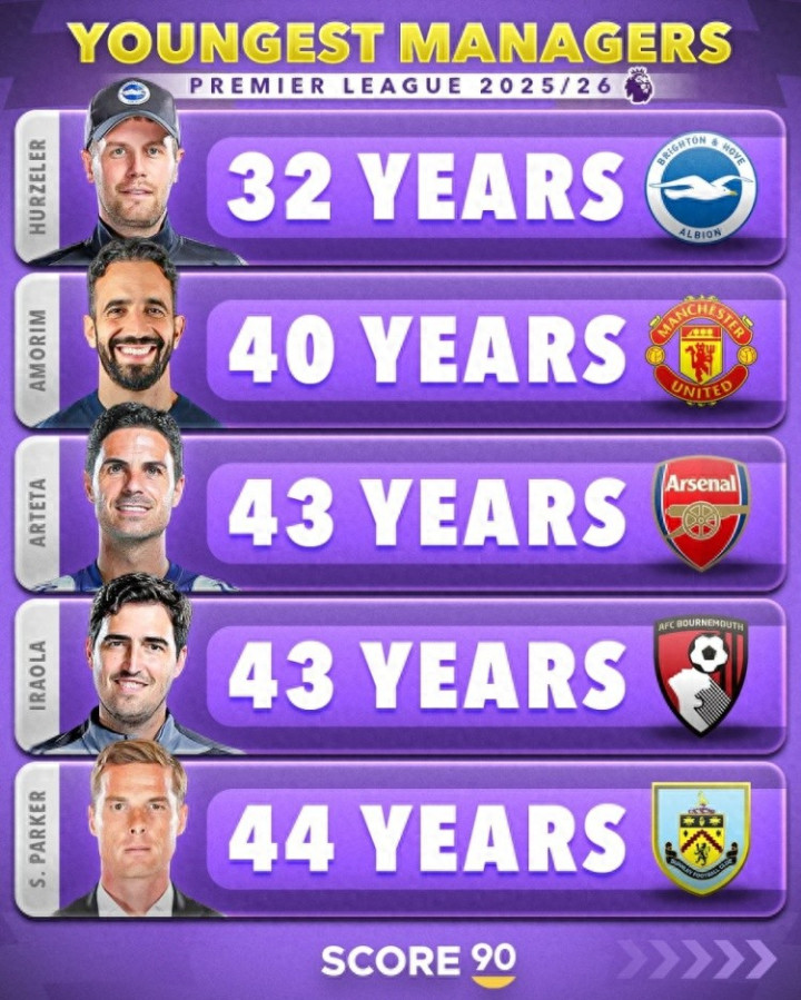 The youngest coach in the Premier League: Hulzeler ranked first at the age of 32, Amorin and Arteta top three